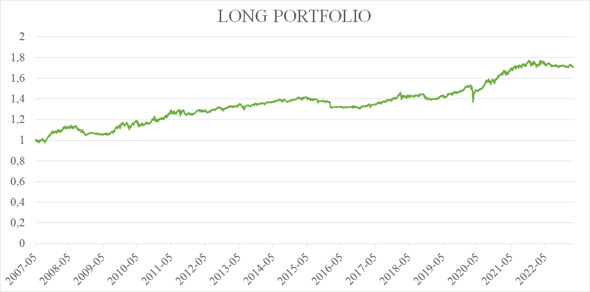 The figure below shows portfolio’s performance. The short-only leg of the whole CTA Proxy strategy has, therefore, a negative contribution to the overall performance. The short-only leg may help the CTA Proxy to perform well in the crisis, but the cost for that is not negligible. We will try to amend the short leg of the strategy, decrease the costs, and improve the CTA Proxy strategy.