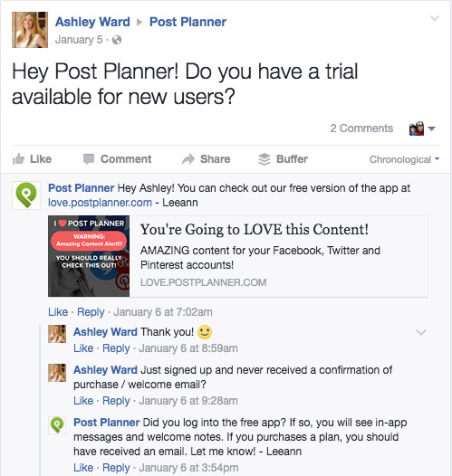 Let me share some examples. Here is a common type of post on Facebook where someone is asking for a new trial of a subscription service.