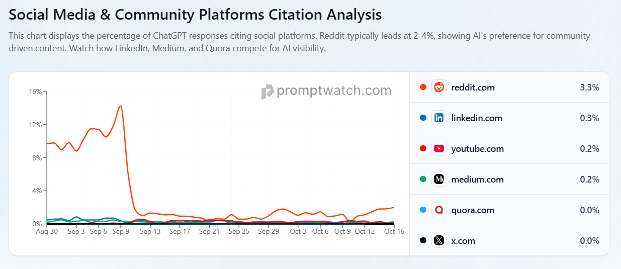 The release of the September numbers showed a major decline in the percentage of ChatGPT responses citing Reddit, sending RDDT down 25% from a high of $270.