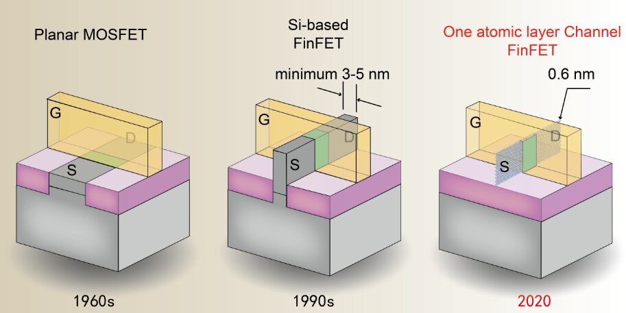 CMOS or Complementary Metal–Oxide–Semiconductor is the underlying tech underpins modern-day electronics – a device known as a transistor. Due to advances in semiconductor engineering / chemistry, a structure known as FinFET has allowed transistors to be scaled (their channel gate length) close to atomic levels (0.1-0.5 nm).